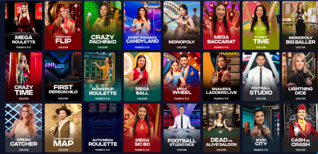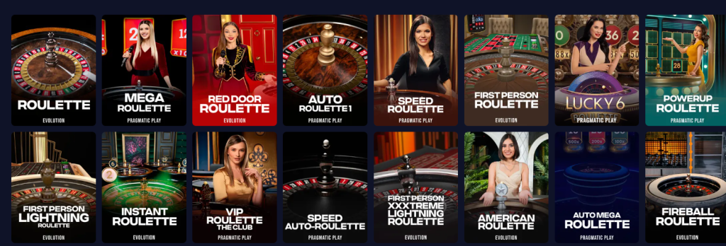 Roulette:Â Select from titles like Lightning Roulette, Mega Roulette, and other American/European roulette variants hosted by top providers like Pragmatic Play and Evolution Gaming.