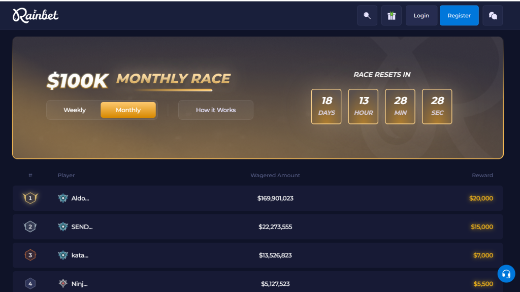 Be sure to activate the Rainbet sign up bonus of 20% rakeback by funding your account. Play more often and receive a higher boost in funds. In addition to this, you can look forward to the following when you become an active member.