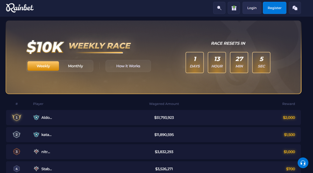 The higher your member tier on Rainbet Casino, the better rewards will be waiting for you.  For instance, those in the “Platinum” level can get higher rakeback and bonuses credited daily, weekly, and monthly.