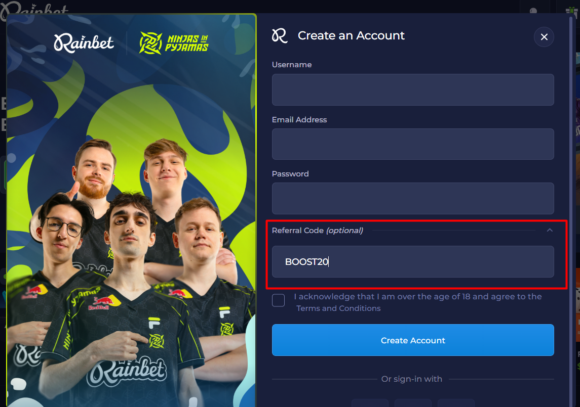 Rainbet Referral Code “BOOST20”